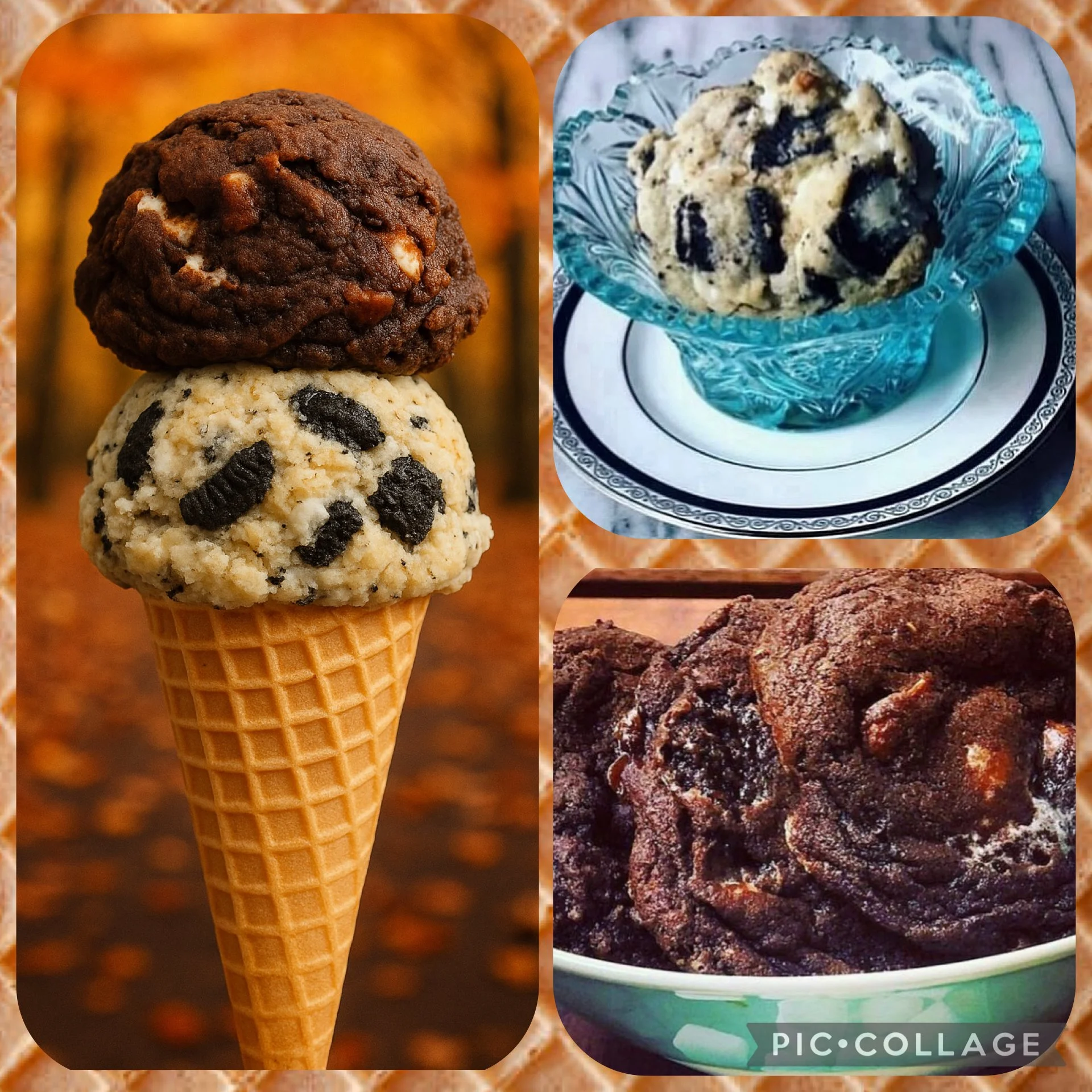 (NB: Ice cream cone image generated by AI, actual cookies shown at right)